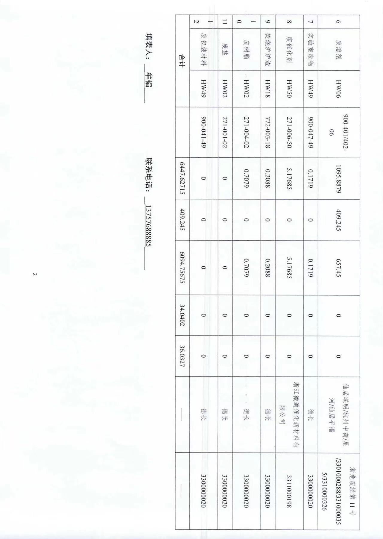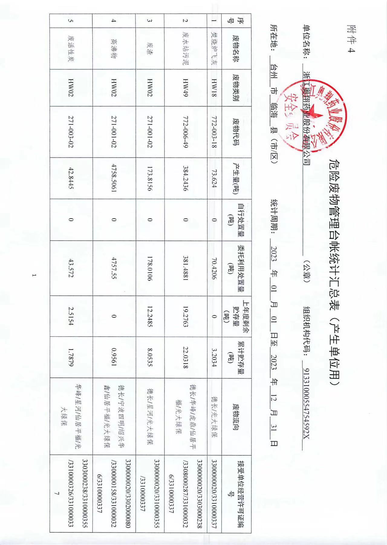 宝威官方网站2023年危险废物管理台帐统计汇总表